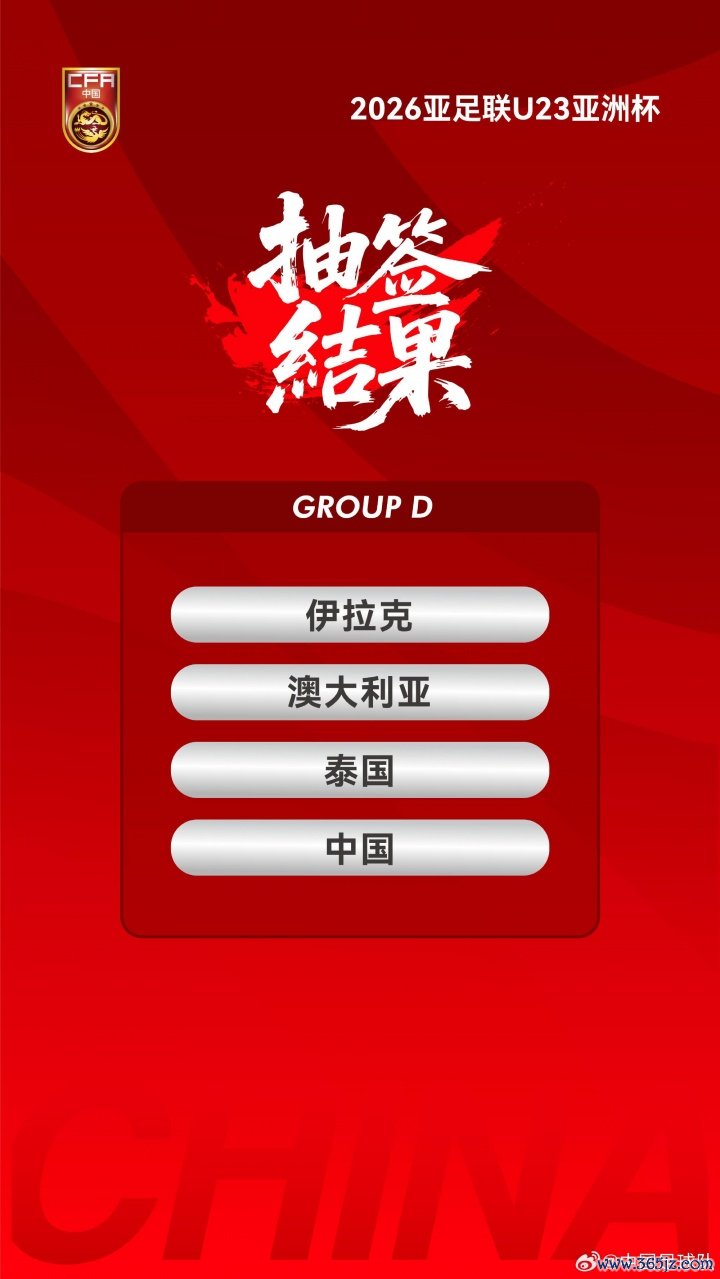 10月02日讯 2026年U23亚洲杯抽签遵循出炉。中国队与伊拉克、澳大利亚、泰国同组。