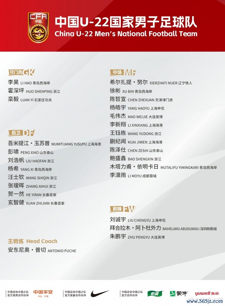 最新一期U22国足名单,来岁这批适龄球员将插足U23亚洲杯