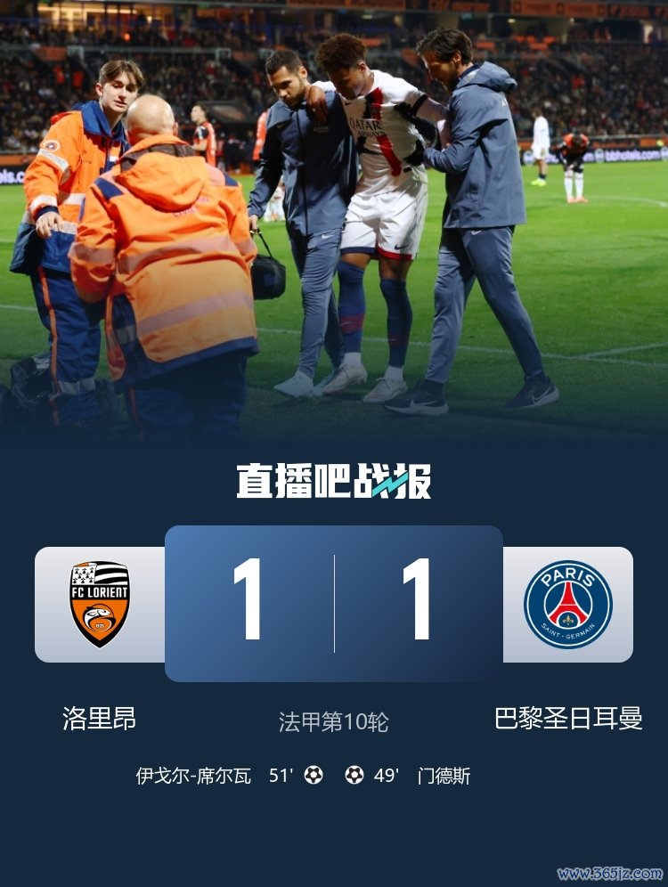 近4轮3平+仅1场零封!巴黎1-1洛里昂先赛领跑 门德斯破门杜埃伤退