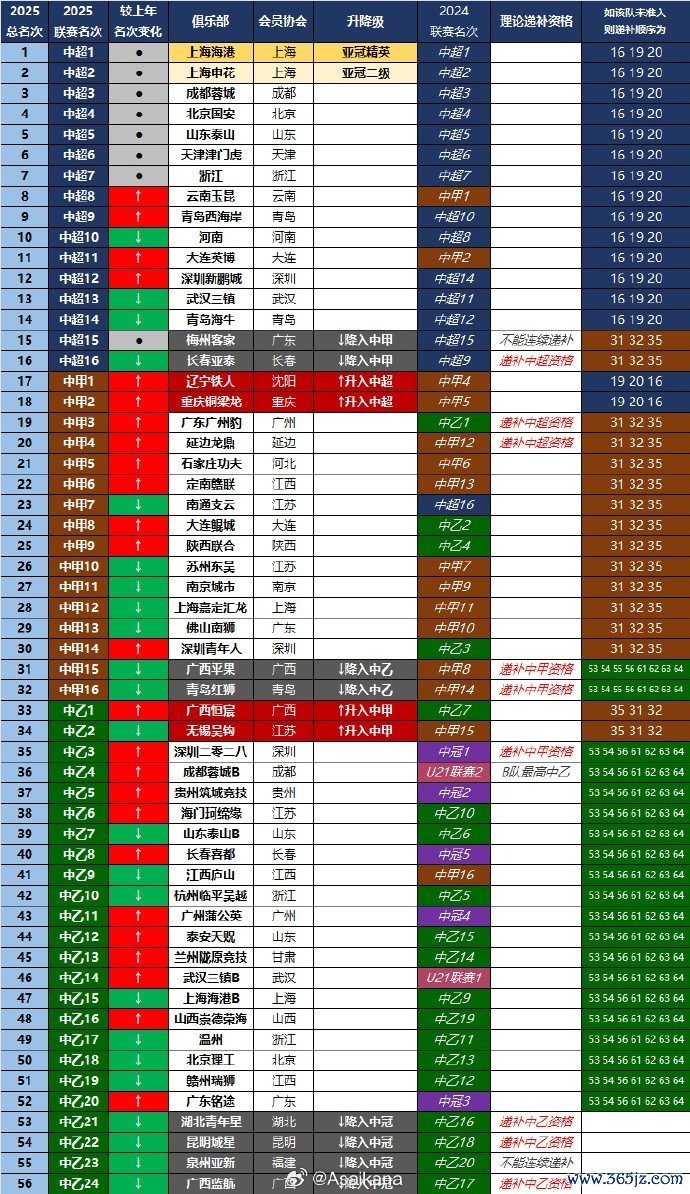11月23日讯 2025赛季中国足球三级办事联赛一王人限制,各级联赛表面递补资历也都一王人确定。其中中超递补资历第一顺位是长春亚泰,第二顺位是广东广州豹。
