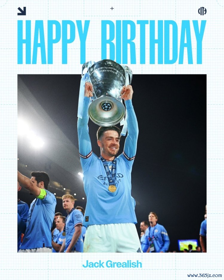 曼城官方社媒晒出为格拉利什制作的诞辰海报,配文:“祝格拉利什诞辰得志!”