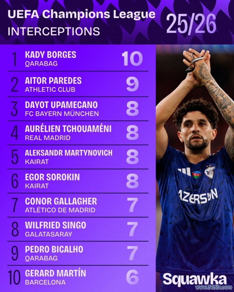 10月23日讯 欧冠第3轮照旧完赛,数据机构squakwa统计了本赛季于今的欧冠羁系情况,