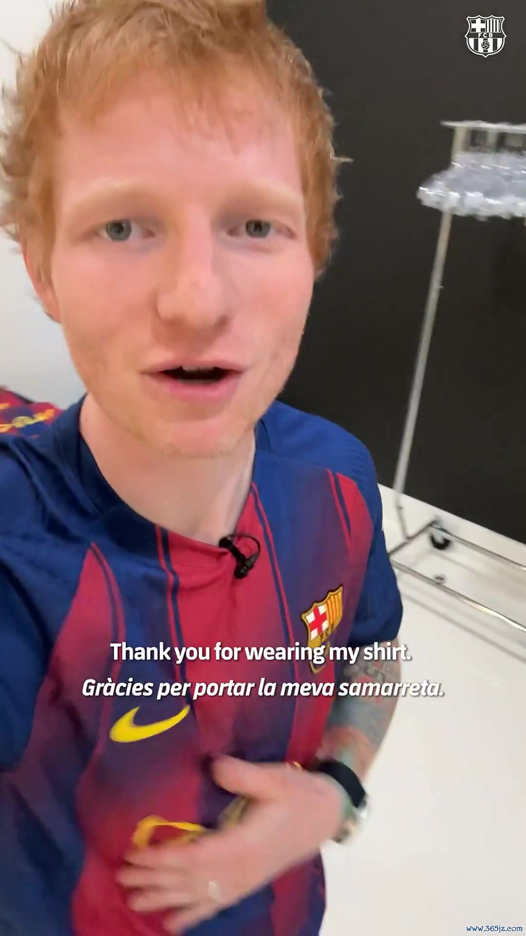 10月26日讯 今晚西甲迎来国度德比,英国有名歌手艾德-希兰穿巴萨球衣讨好。