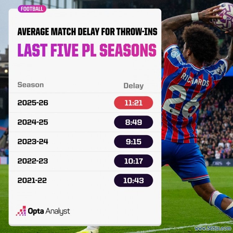 10月30日讯 Opta数据走漏,本赛季英超级待掷界外球的平均本领为11.21秒,近5年最久。