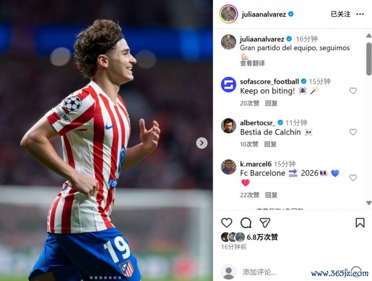 本场比赛阿尔瓦雷斯1球2助攻,赛后他也在个东谈主社媒晒出本场庆祝像片,配文写谈:“全队拿出精彩进展,让咱们不时加油!”