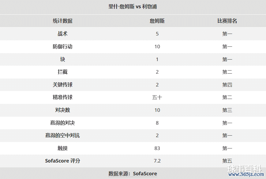 ——铲球、防卫算作、封堵、挣扎得胜、空中挣扎得胜、触球次数沿途全场第一;