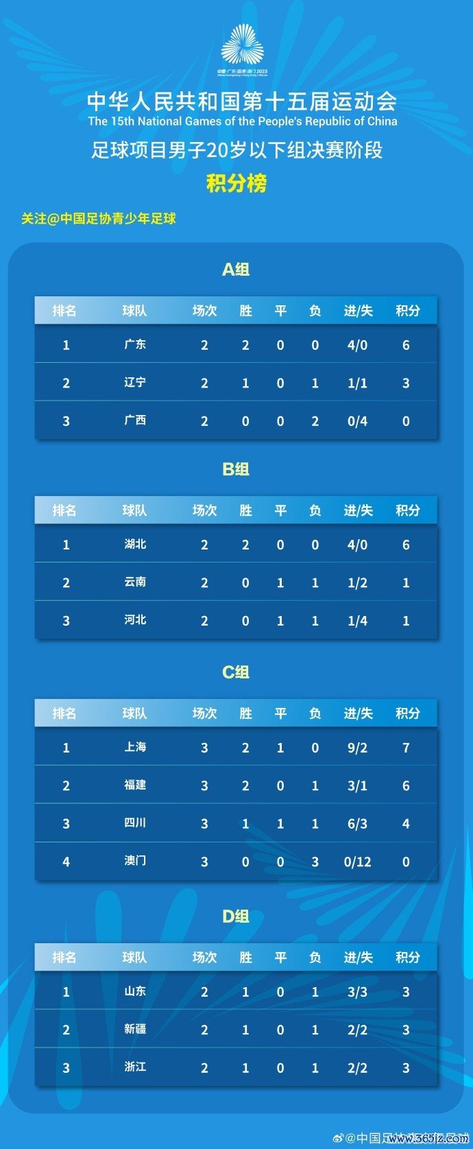 【八强出炉】中华东说念主民共和国第十五届通顺会足球表情男人20岁以下组决赛阶段小组赛甩掉,积分榜和第四、五、六比赛日对阵如下👇👇